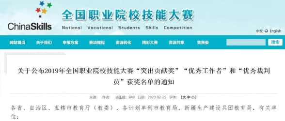 2月25日,全国职业院校技能大赛执行委员会公布了2019年全国职业院校技能大赛“突出贡献奖”“优秀工作者”和“…
